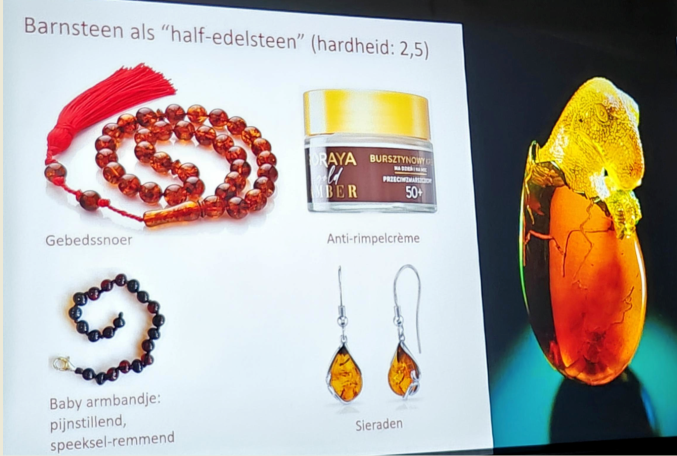 Barnsteen wordt in vele producten verwerkt; van sieraad tot ingredient voor anti-rimpel crème (zie foto).