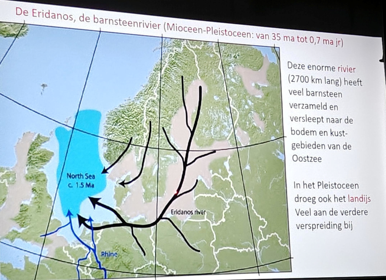 De barnsteen uit het Baltische gebied is afgezet door de miljoenen jaren oude rivierloop van de Eridanos. Dit is een rivier (uit het Mioceen, ca 35-7 ma) die vanuit noord-europa naar de Noordzee liep.