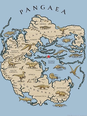 De reis beging zo’n 240 miljoenjaar geleden toen de pre-Dolomieten nog een kuststreek vormden aan de Tethys Oceaan (zie de rode ster op foto 1).