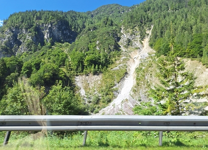 Deze processen variëren van berg-afschuivingen (foto 3) in aardbevings-gebieden tot vervormingen van de gesteentelagen (foto 4) door de immense druk van opstijgend gesteente tot karst-verschijnselen.