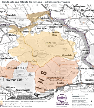 In de inleiding geef ik aan waar we de Caldbeck Fells op de kaart moeten situeren (zie foto 1). Het bevind zich in het gebied ten noorden van Keswick en ten zuiden van Caldbeck, in de afbeelding het roze gebied. Het gebied ligt in het Lake Districk, noord-west Engeland.